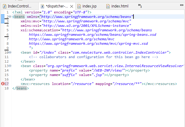<bean id="/index" class="com.newlecture.web.controller.IndexController">