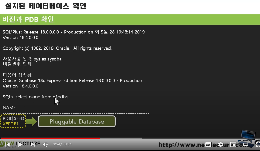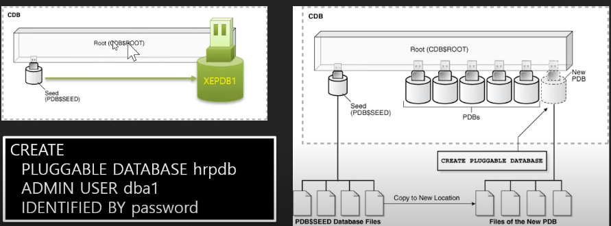 처음에 설치하면 CDB와 XEPDB1이라는게 있다.