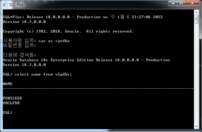 이전에 접속한 서버는 컨테이너로서의 CDB라는 서버이다.
