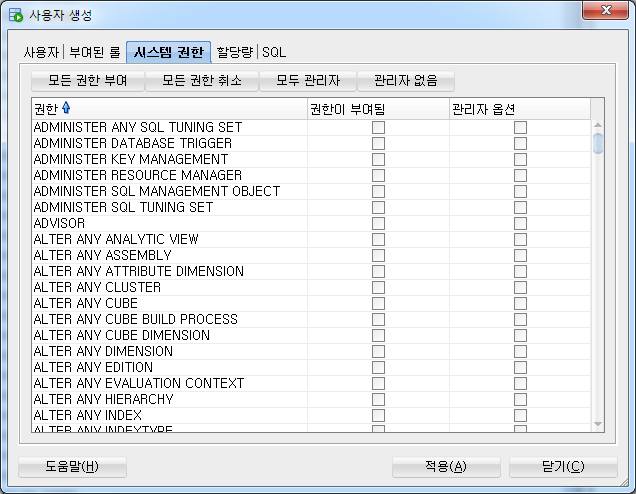 SYSTEM admin은 SYS에 비해 한정적 권한이다..?