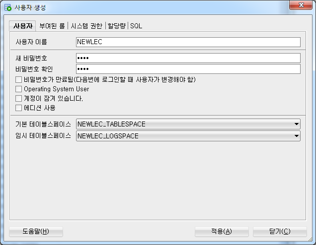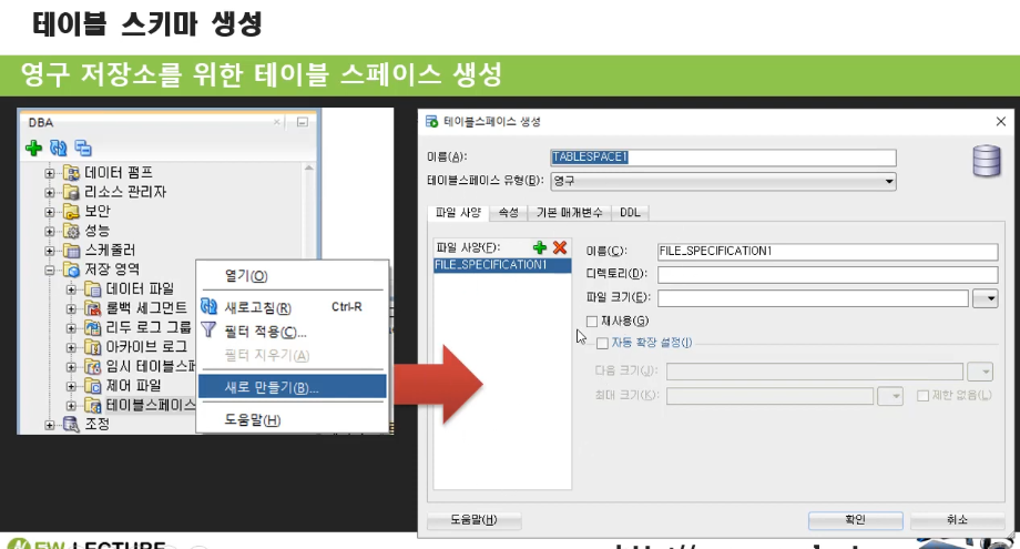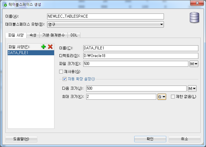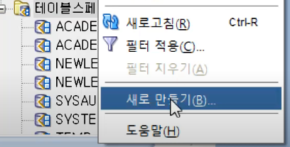 다시 테이블 스페이스 - 새로 만들기