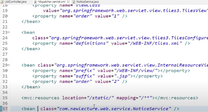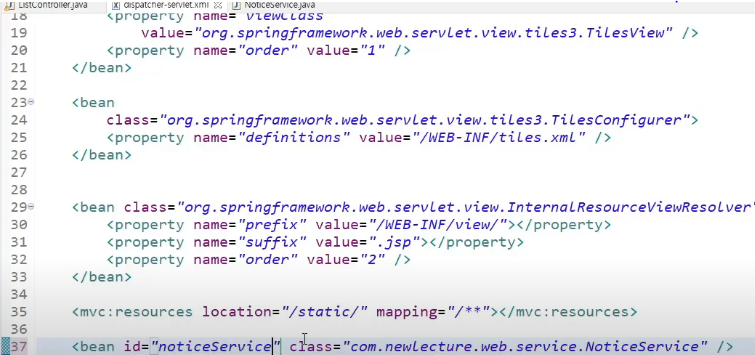 ref="noticeService" 추가 (위에 id="noticeService" 참고하란 의미)