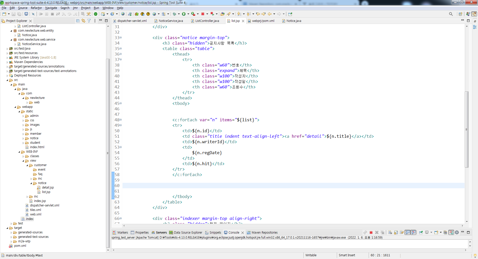 Notice.java의 getId, getTitle등을 활용하여 EL작성