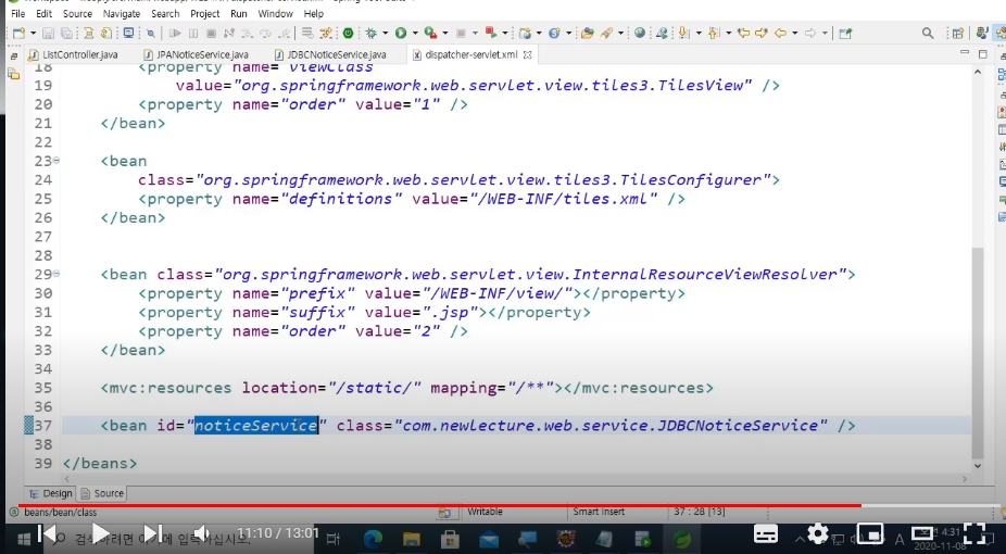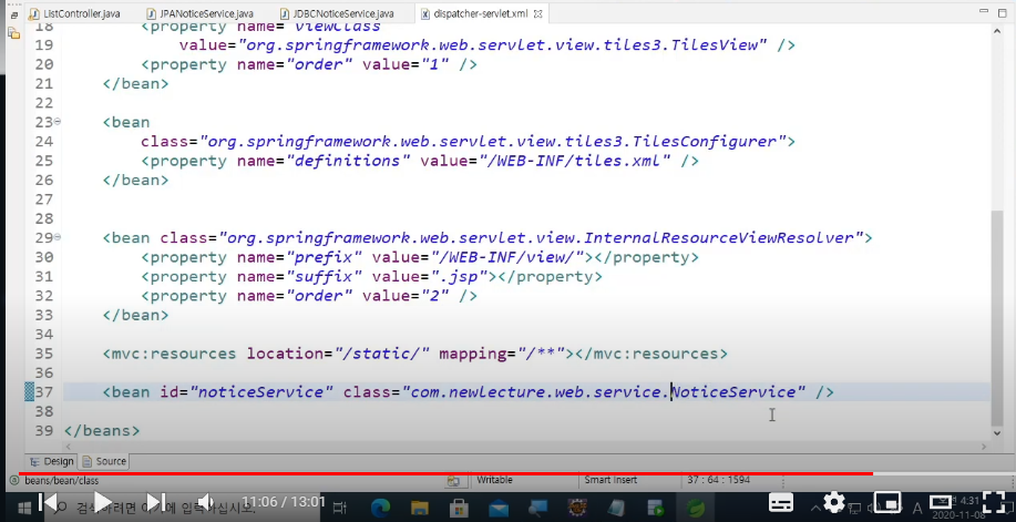 <bean id="noticeService" class="com.newlecture.web.service.JDBCNoticeService" />