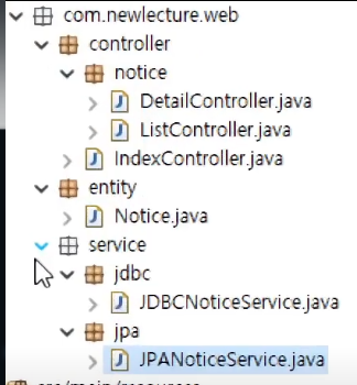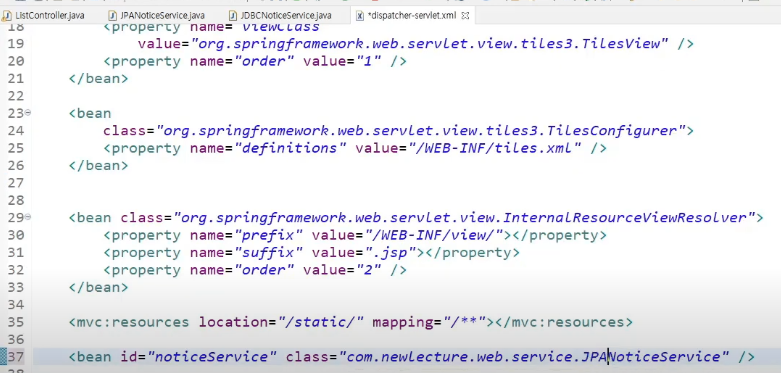<bean id="noticeService" class="com.newlecture.web.service.JPANoticeService" />