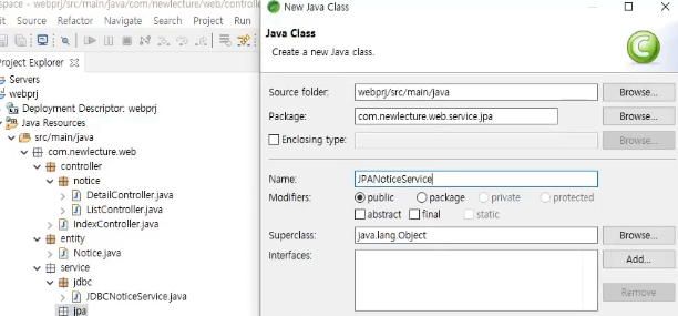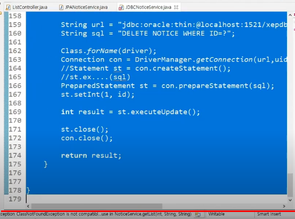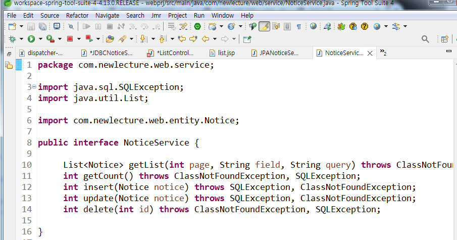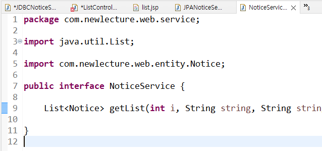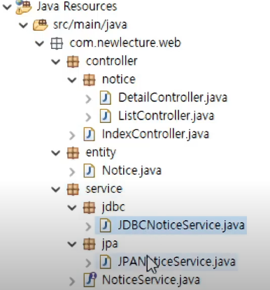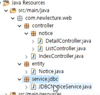 JDBC 가서 NoticeService implements한다