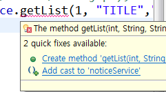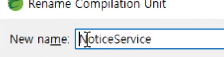 과거에 만든 NoticeService가 지금은 인터페이스이므로 수정해주자