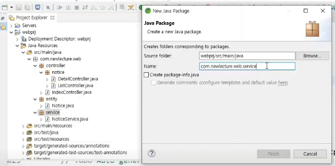 NoticeService.java 패키지 위치 옮기기