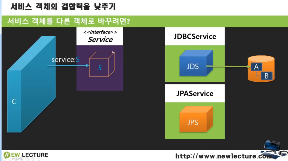 이럴때 인터페이스로 결합시켜놨다면 바꾸기 어렵지 않아진다.