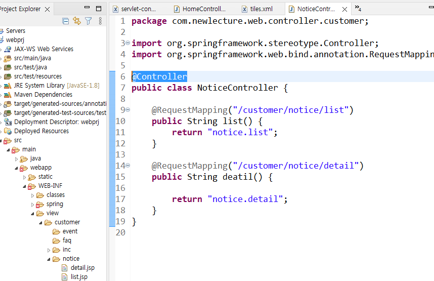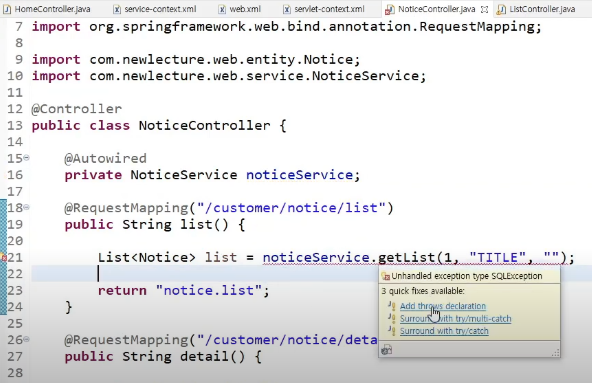 즉 NoticeController 클래스 안에