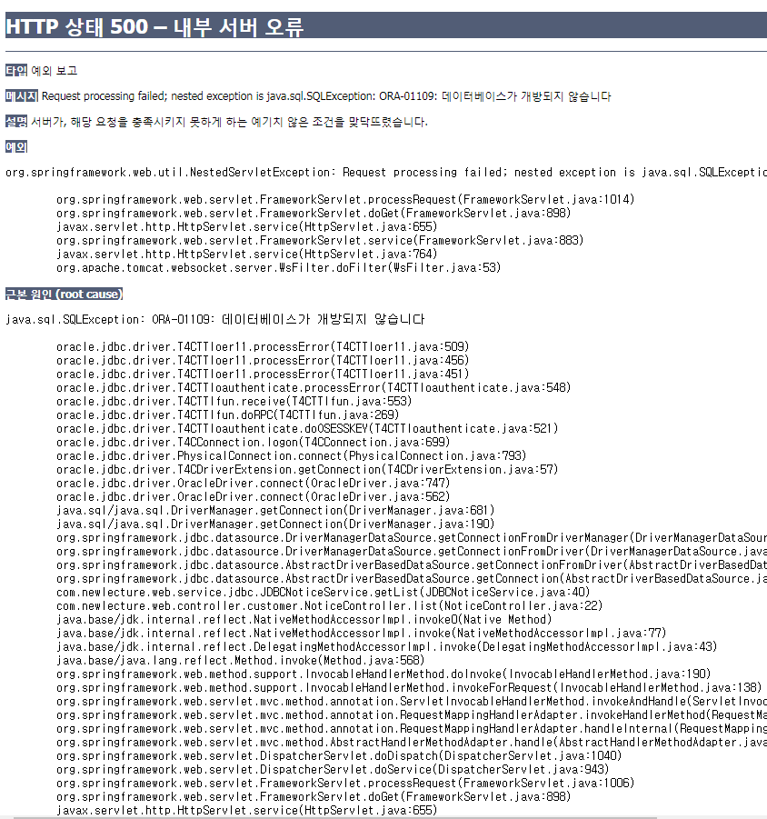 오라클 데이터 베이스가 개방되지 않았습니다.