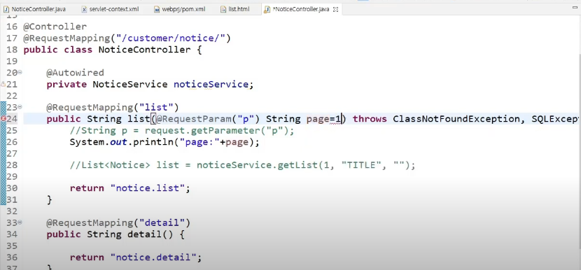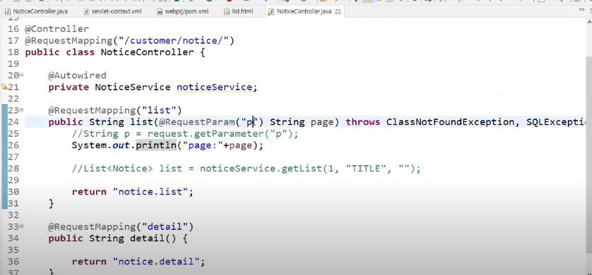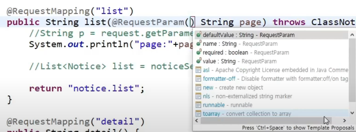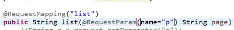 @RequestParam(name="p")이란 의미이다.