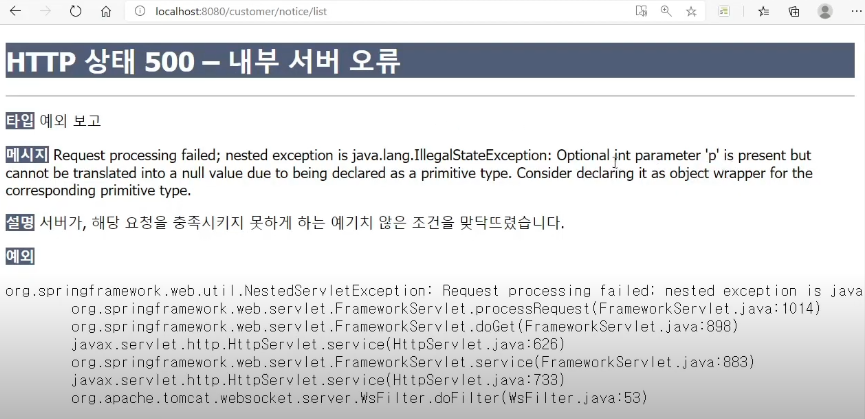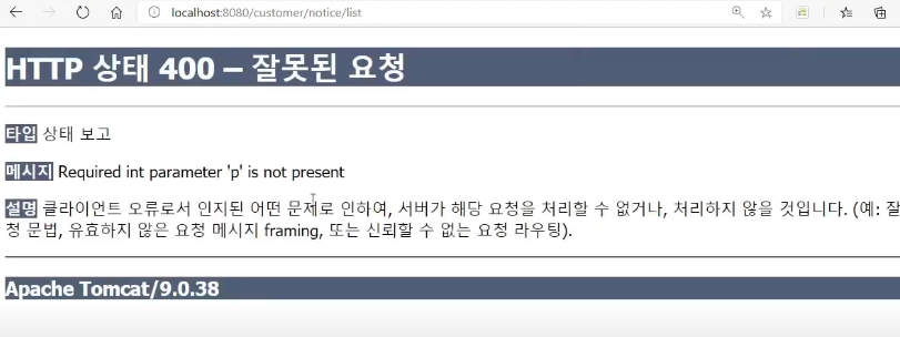 기본값 사용하지 않고 name에 해당하는 값을 쿼리로 전달하면 오류가 발생한다.