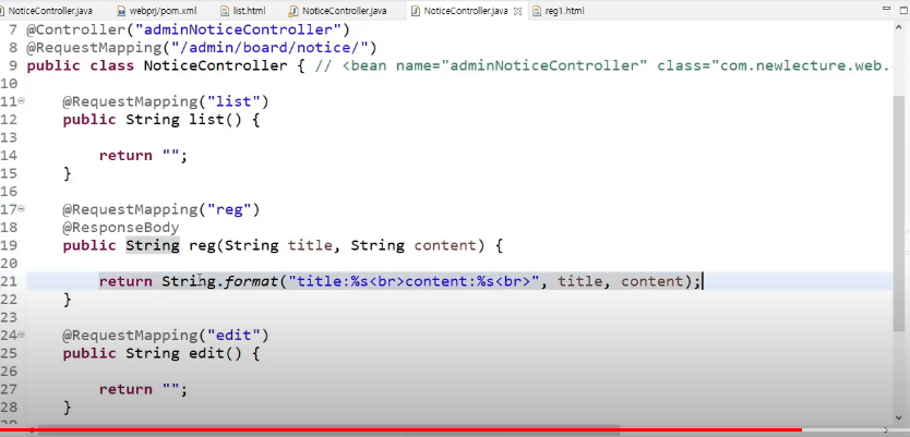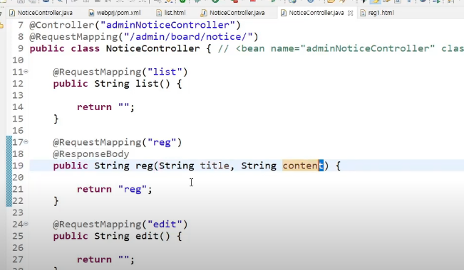 title, content 값이 reg로 전송될 것이다.
