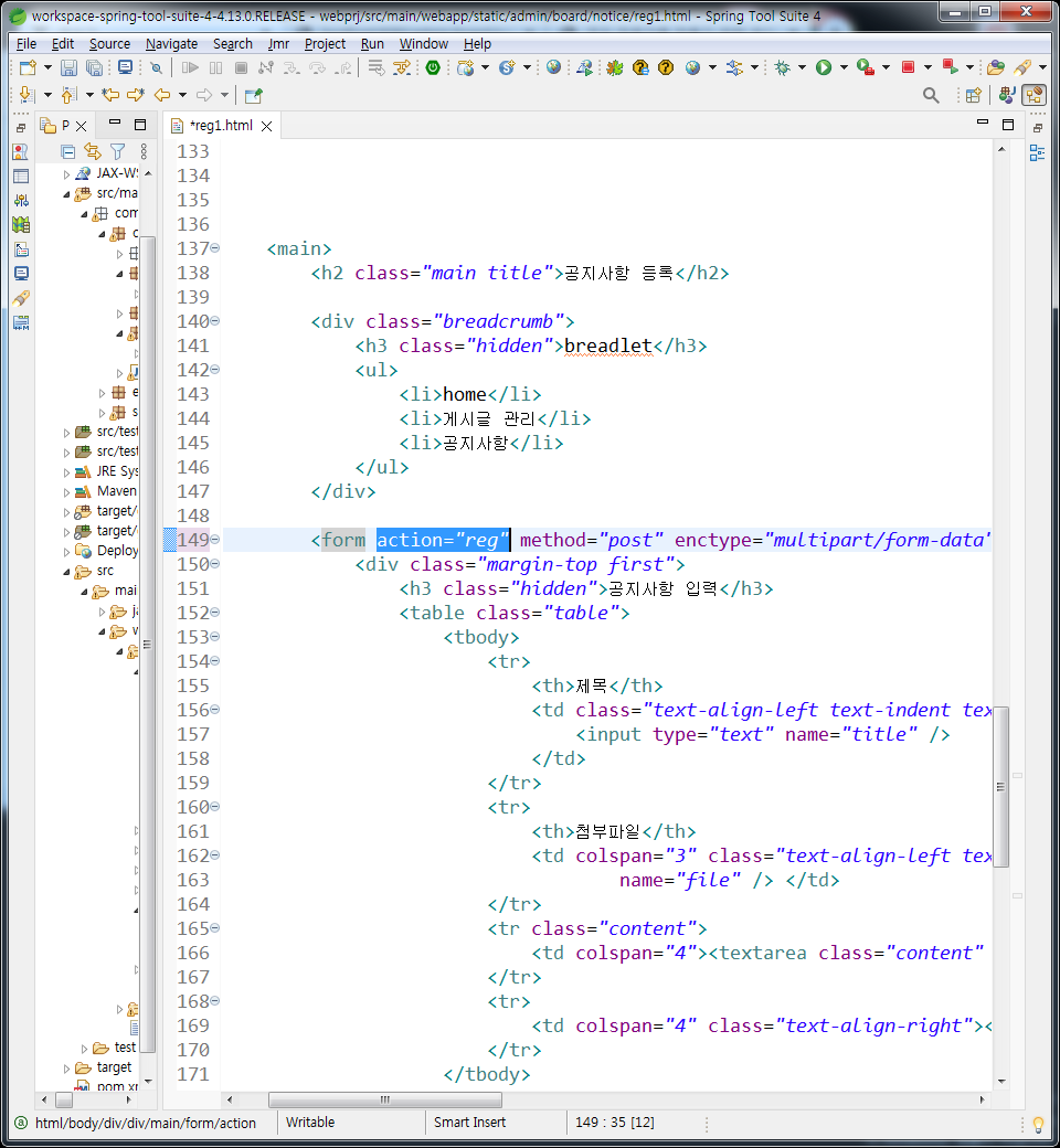 action="reg"추가