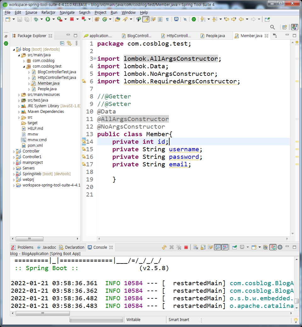 | 스프링부트 강좌 14강(블로그 프로젝트) - http요청 실습2 (0) | 2022.01.21 |