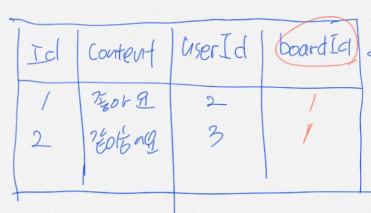 포린키는 boardId에 있어야지 userId에 있으면 안 됨
