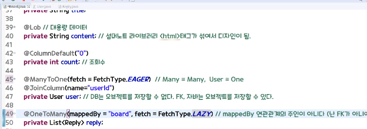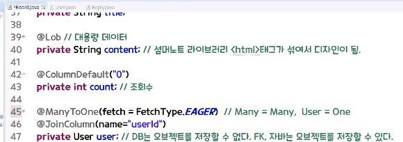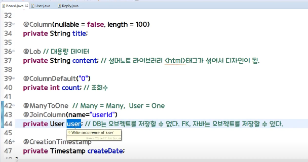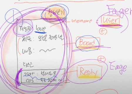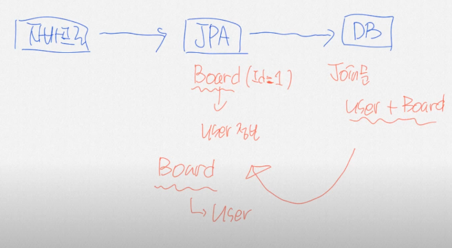 DB에선 JPA로 Board 정보주는데 거기에 user정보가 들어온다.
