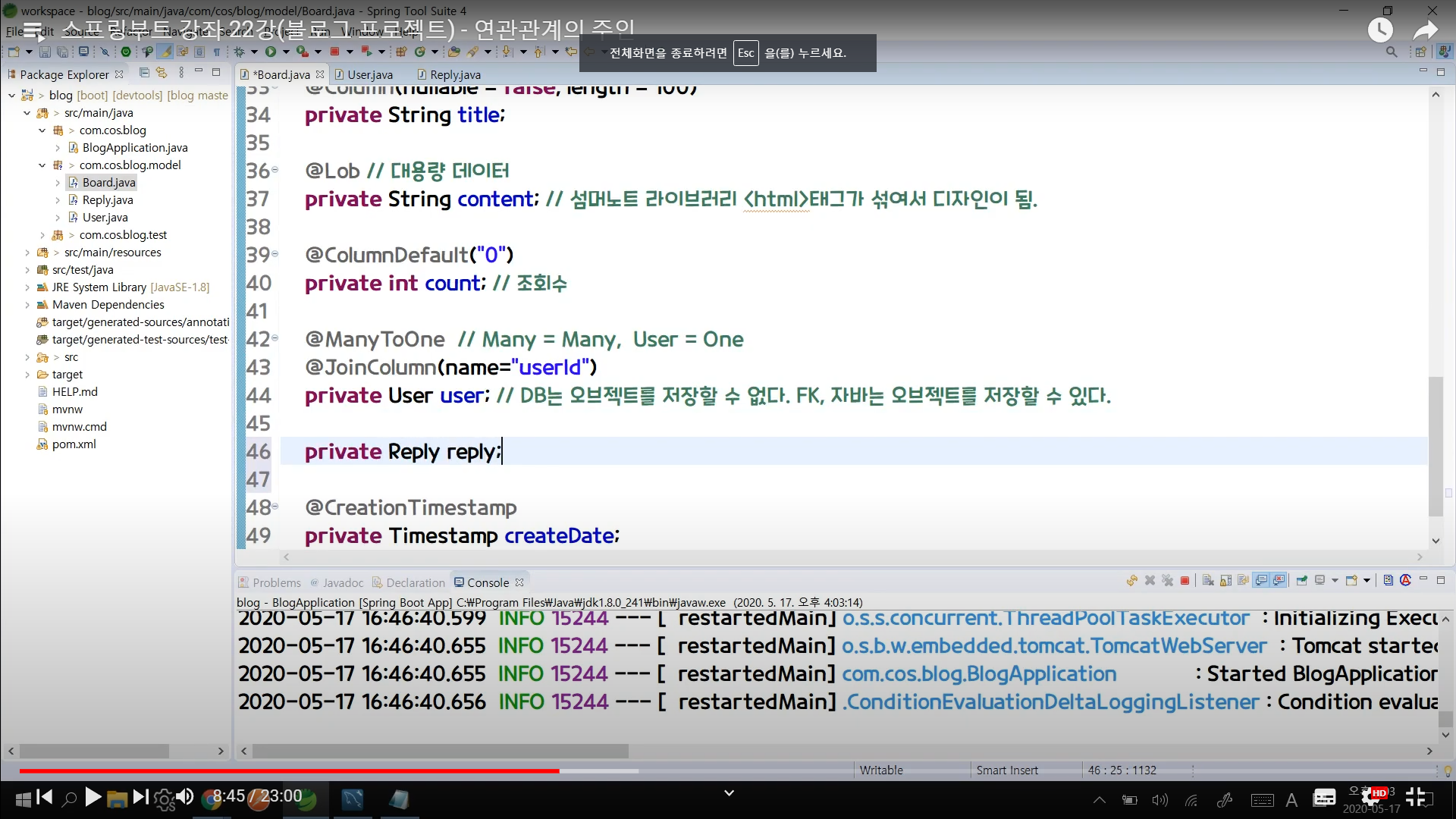 | 스프링부트 강좌 20강(블로그 프로젝트) - Board테이블 생성 (0) | 2022.01.21 |