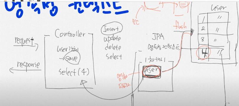 JPA 1차 캐시안에 user객체가 쌓인다.