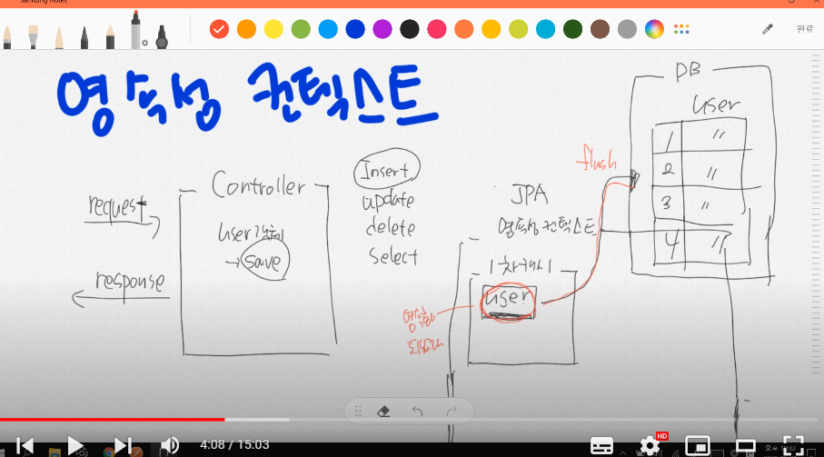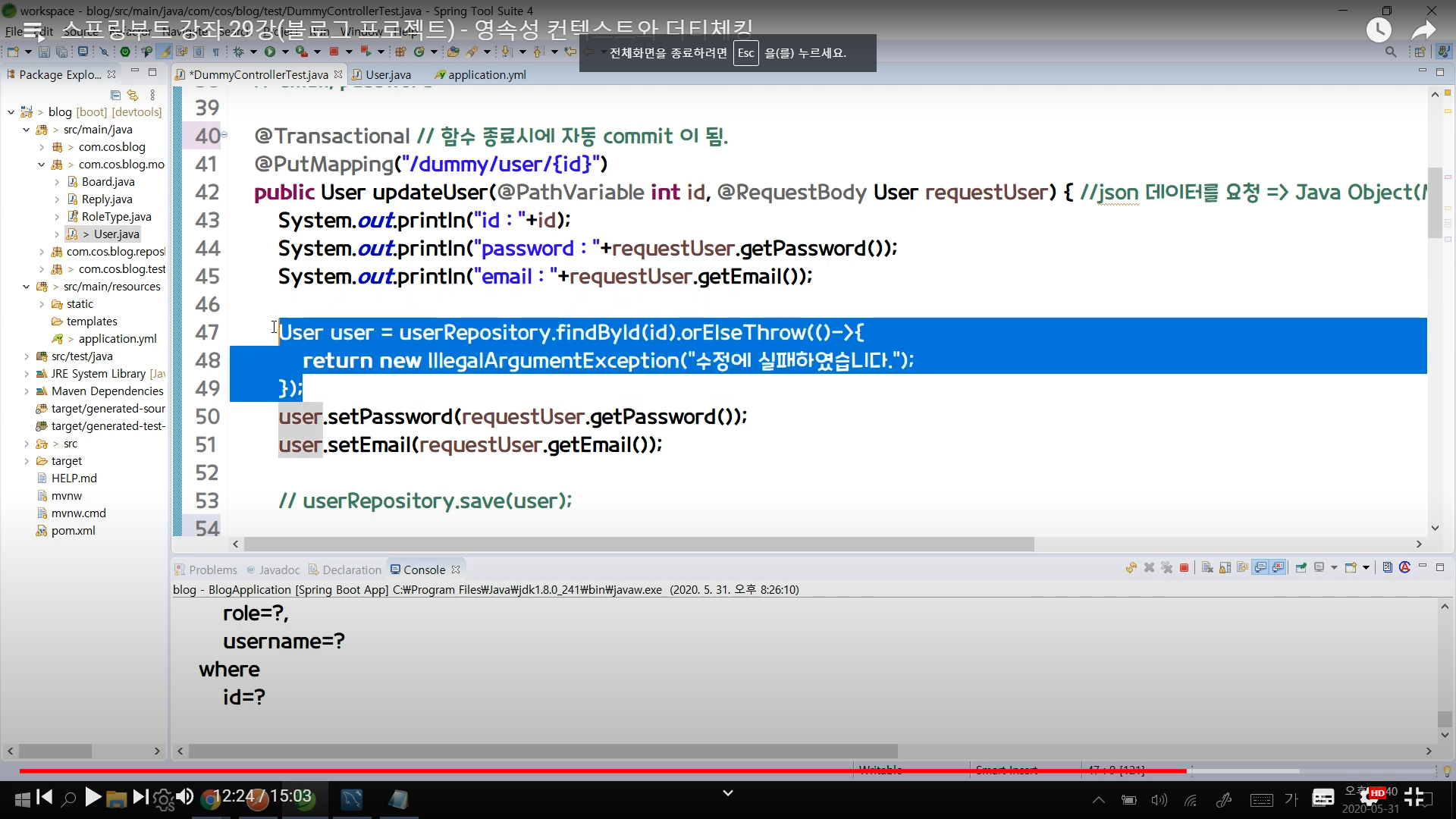 50, 51행에서 user오브젝트 변경 (이건 영속화된 오브젝트임)