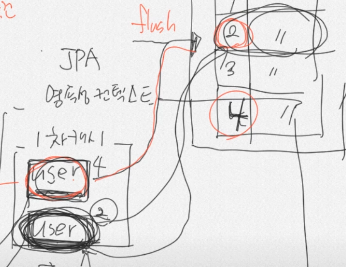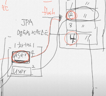 그 후 flush해서 update된 2번 user를 DB 2번에 넣으면 update가 완료된다.