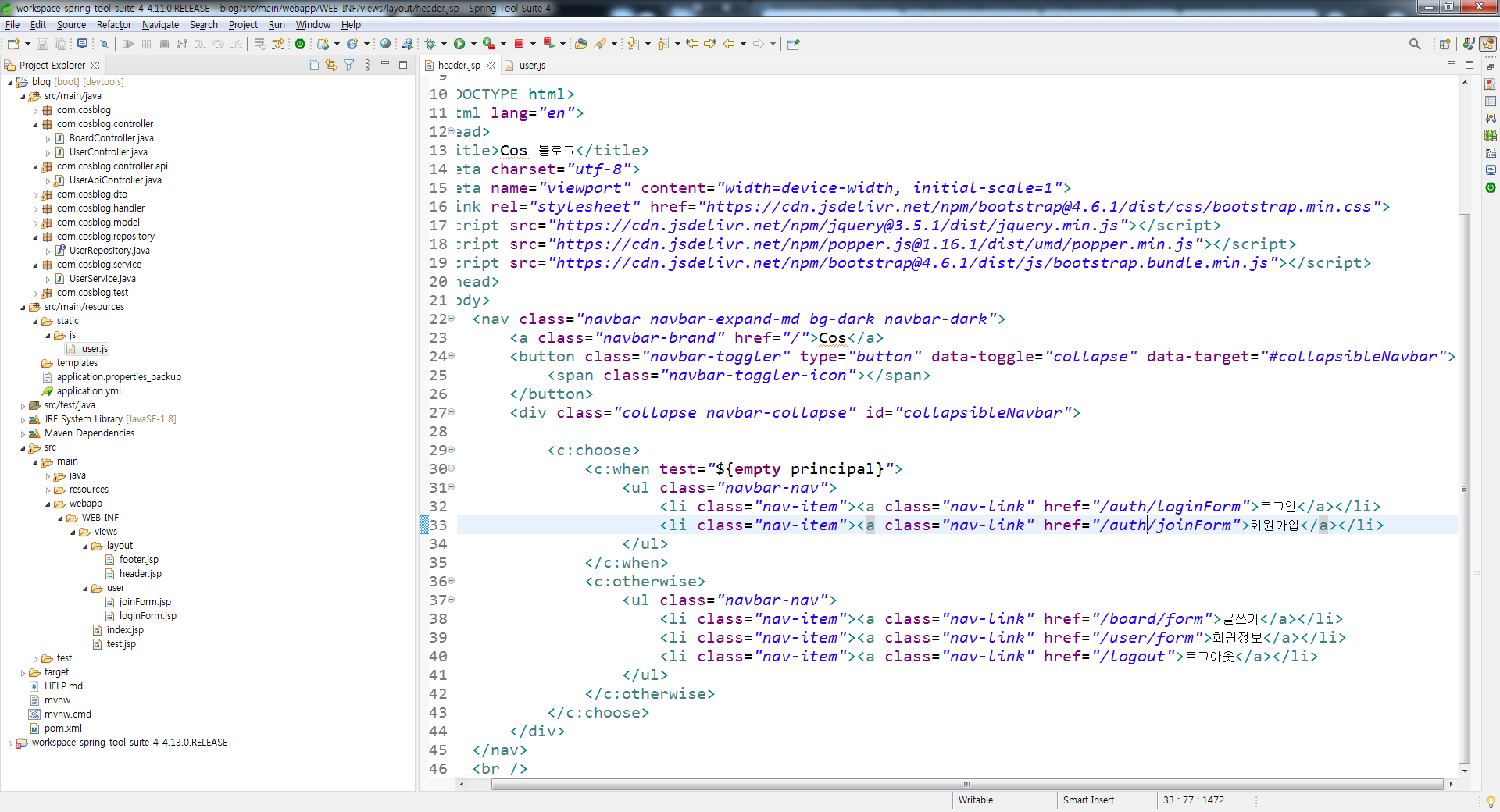 header에 와서도 @Controller와 href 주소값 알맞게 수정중
