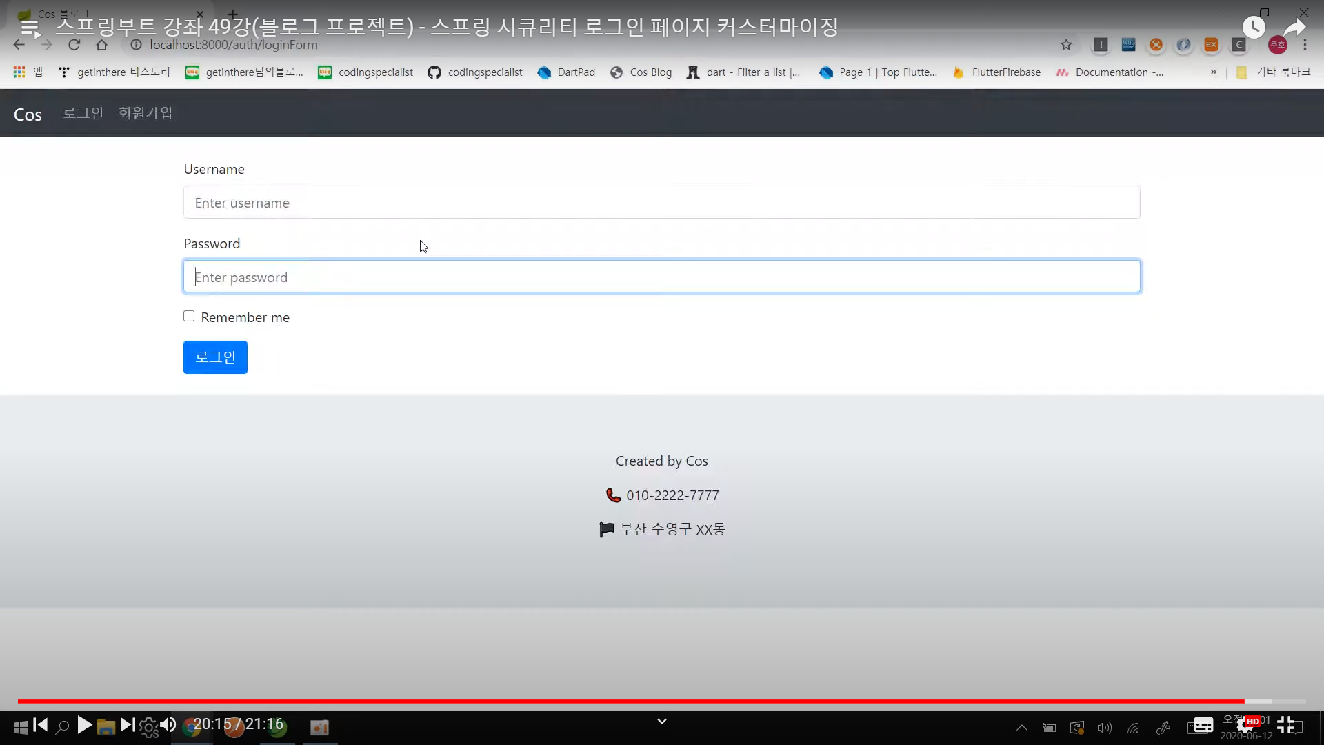 | 스프링부트 강좌 48강(블로그 프로젝트) - 스프링 시큐리티 체험해보기 (0) | 2022.01.23 |