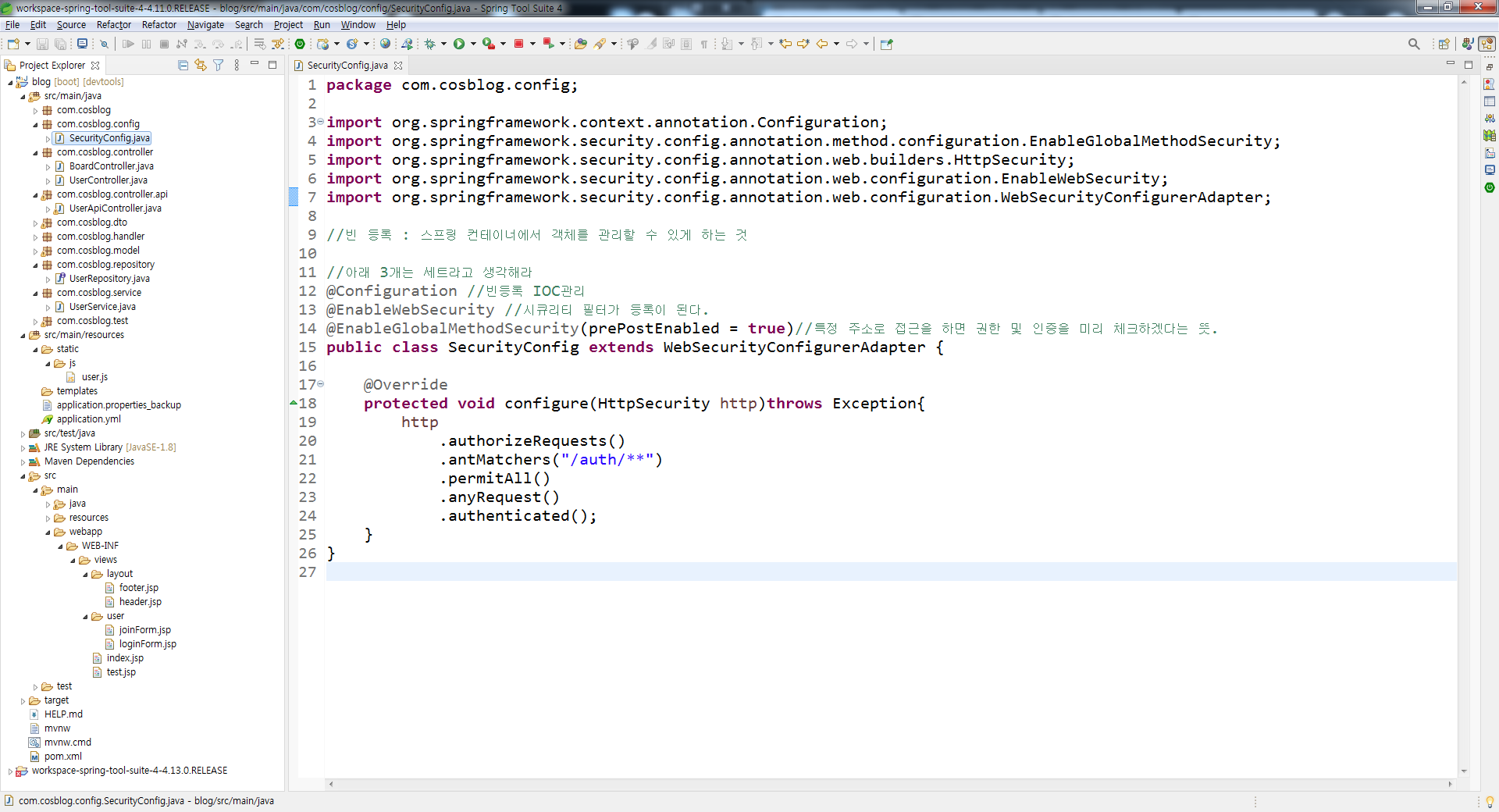 @EnableWebSecurity 설명 : @Configuration 시작되기 전에 필터를 거는 것