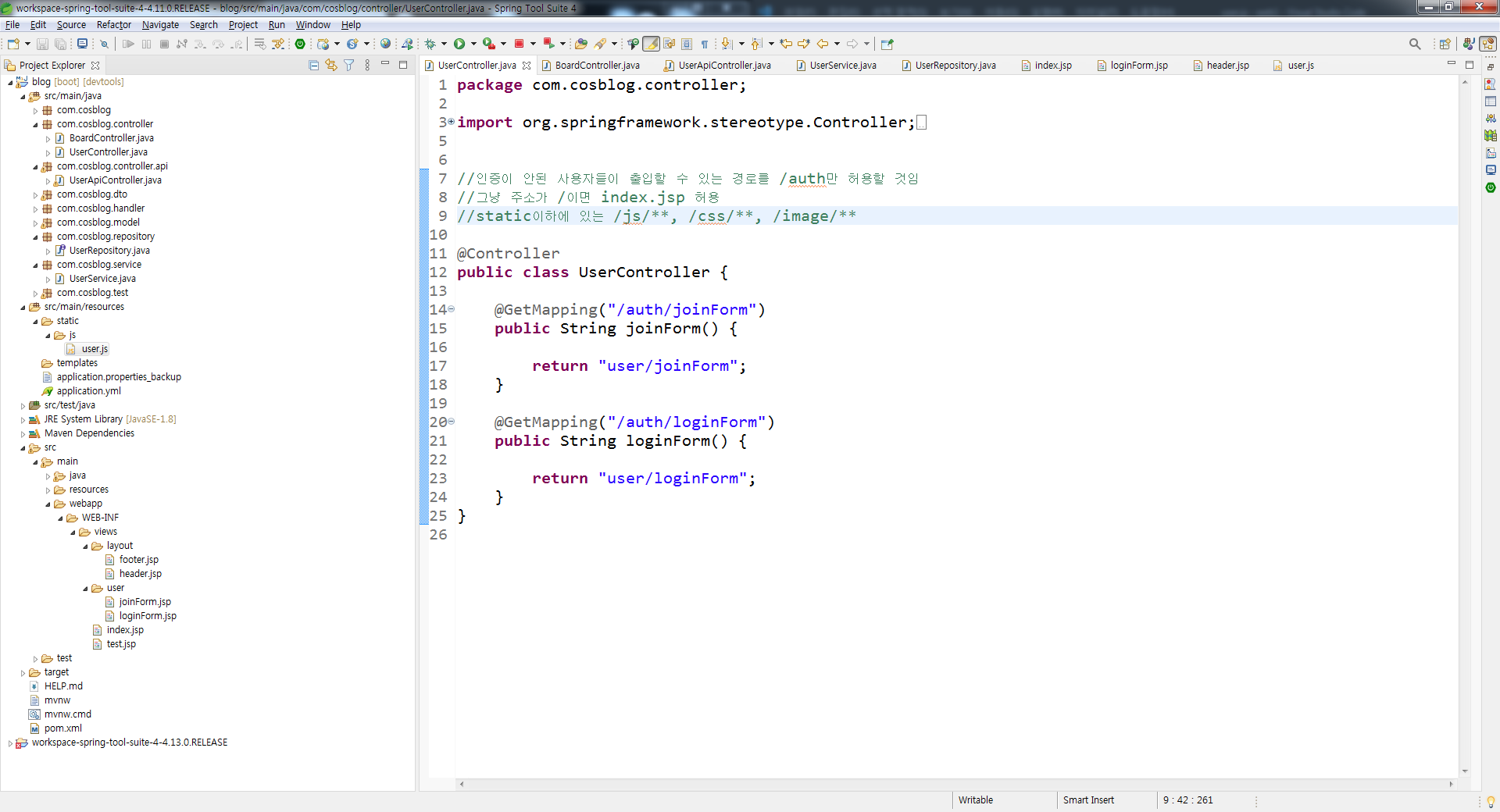| 스프링부트 강좌 47강(블로그 프로젝트) - 시큐리티 시작전 요청 주소 변경 (0) | 2022.01.23 |