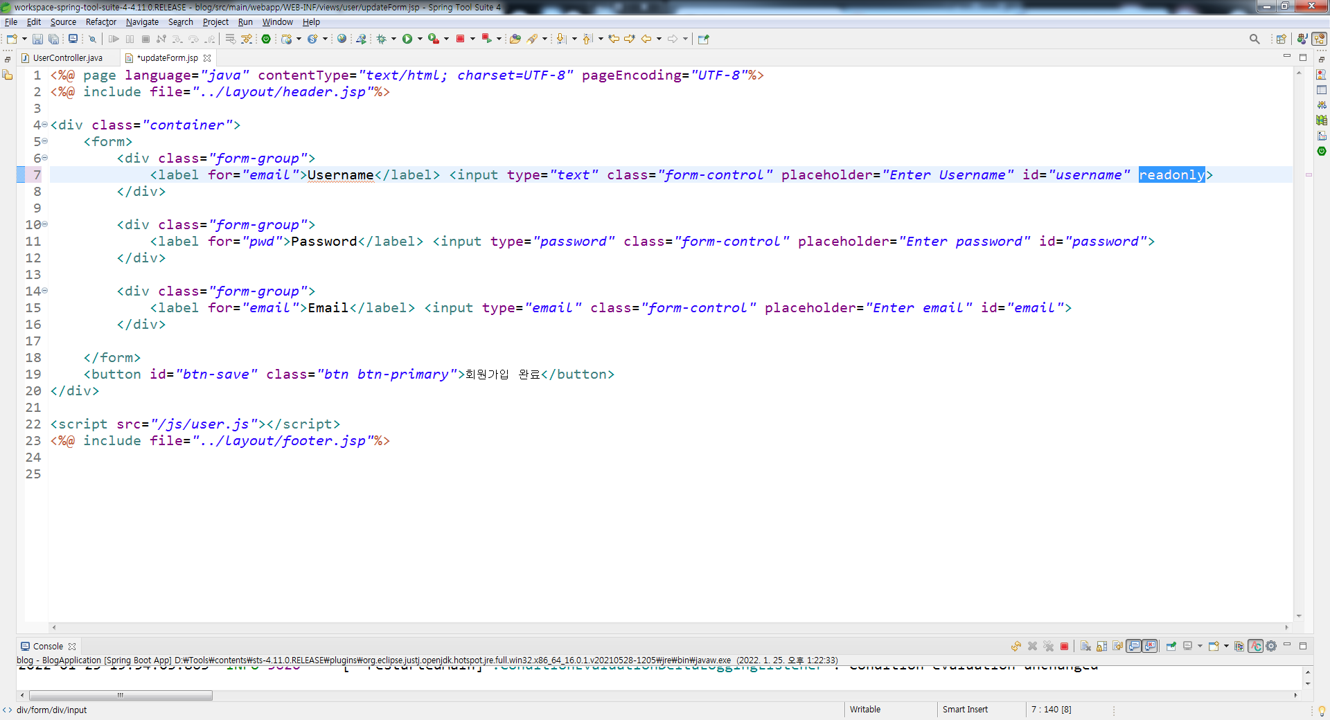 | 스프링부트 강좌 61강(블로그 프로젝트) - 회원수정 2 (0) | 2022.01.25 |