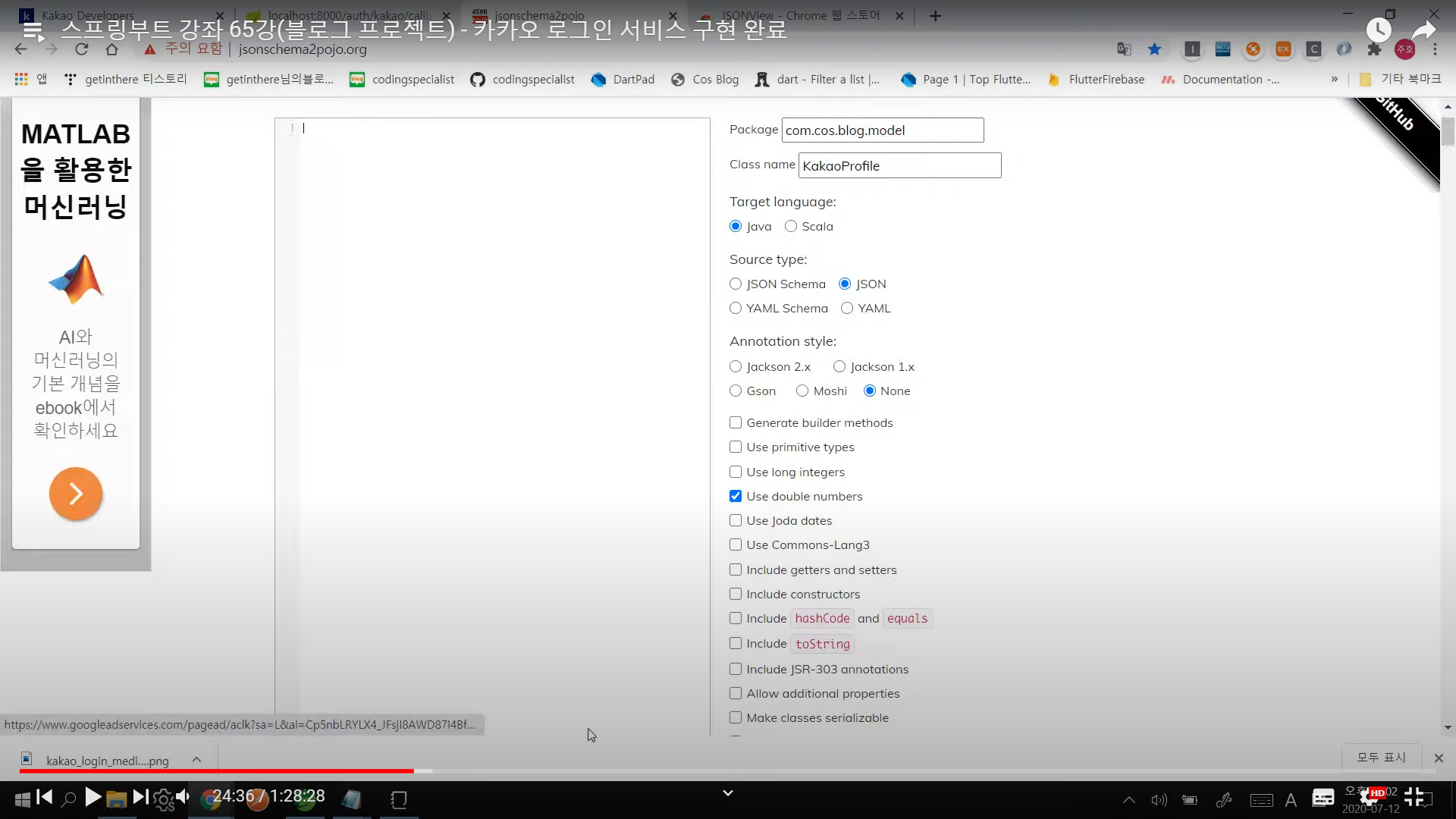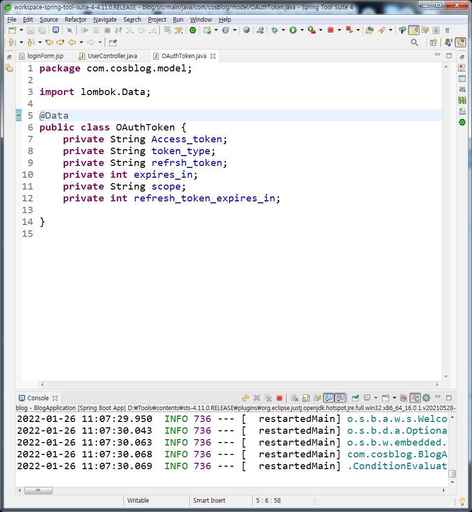 | 스프링부트 강좌 64강(블로그 프로젝트) - 카카오 로그인 엑세스토큰 받기 (0) | 2022.01.26 |