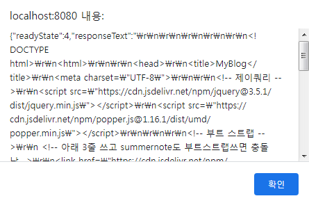근본적인 문제는 파악 못했지만 dataType때문에 저 에러문구가 뜬다