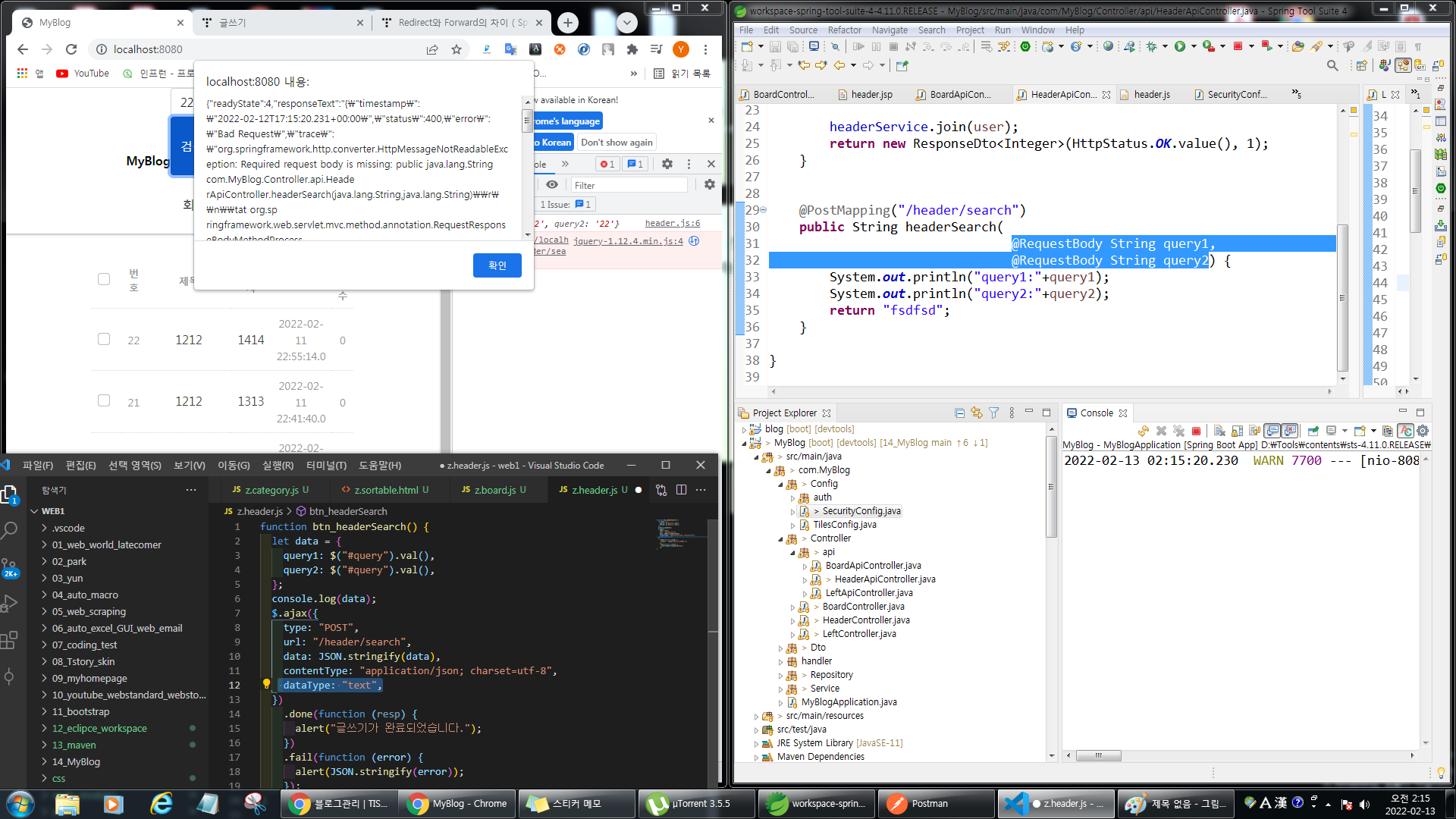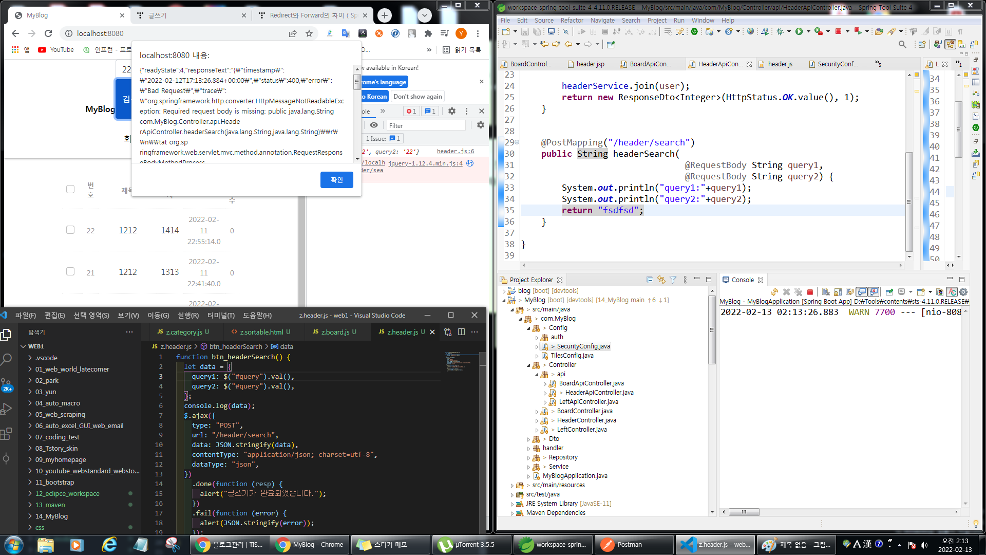 .js의 data가 시큐리티에 막혀 @PostMapping("/header/search") 로 가지 못하고