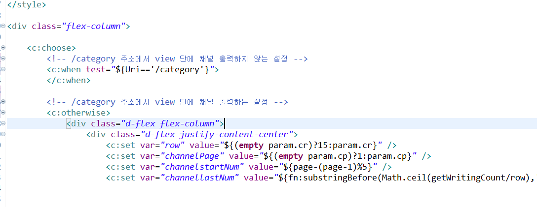 주석을 달려고 choose태그 간격을 띄웠더니 에러가 떴다.