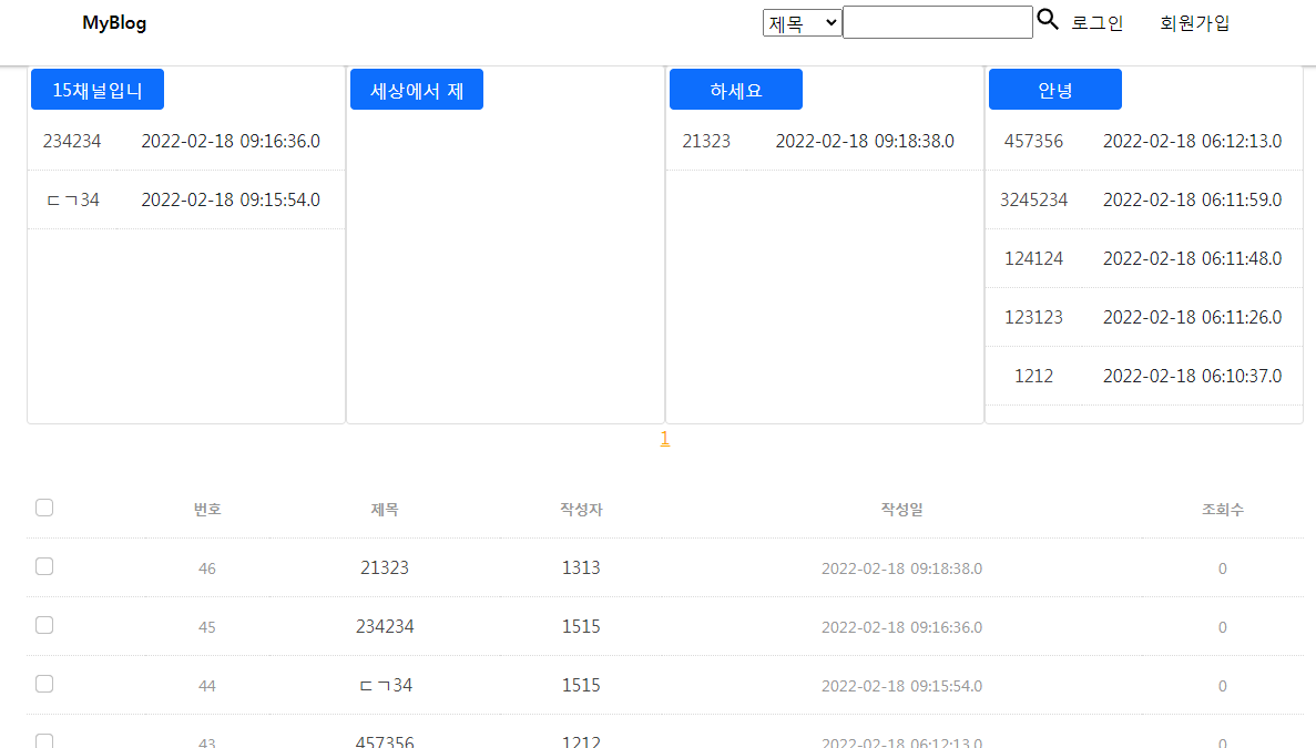 각 채널별 최근 5개 게시글 그룹핑 완성