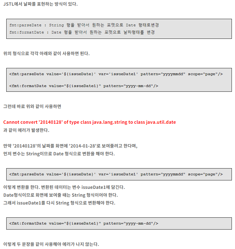 fmt:formatDate : Date형 -> 날짜형태 변경