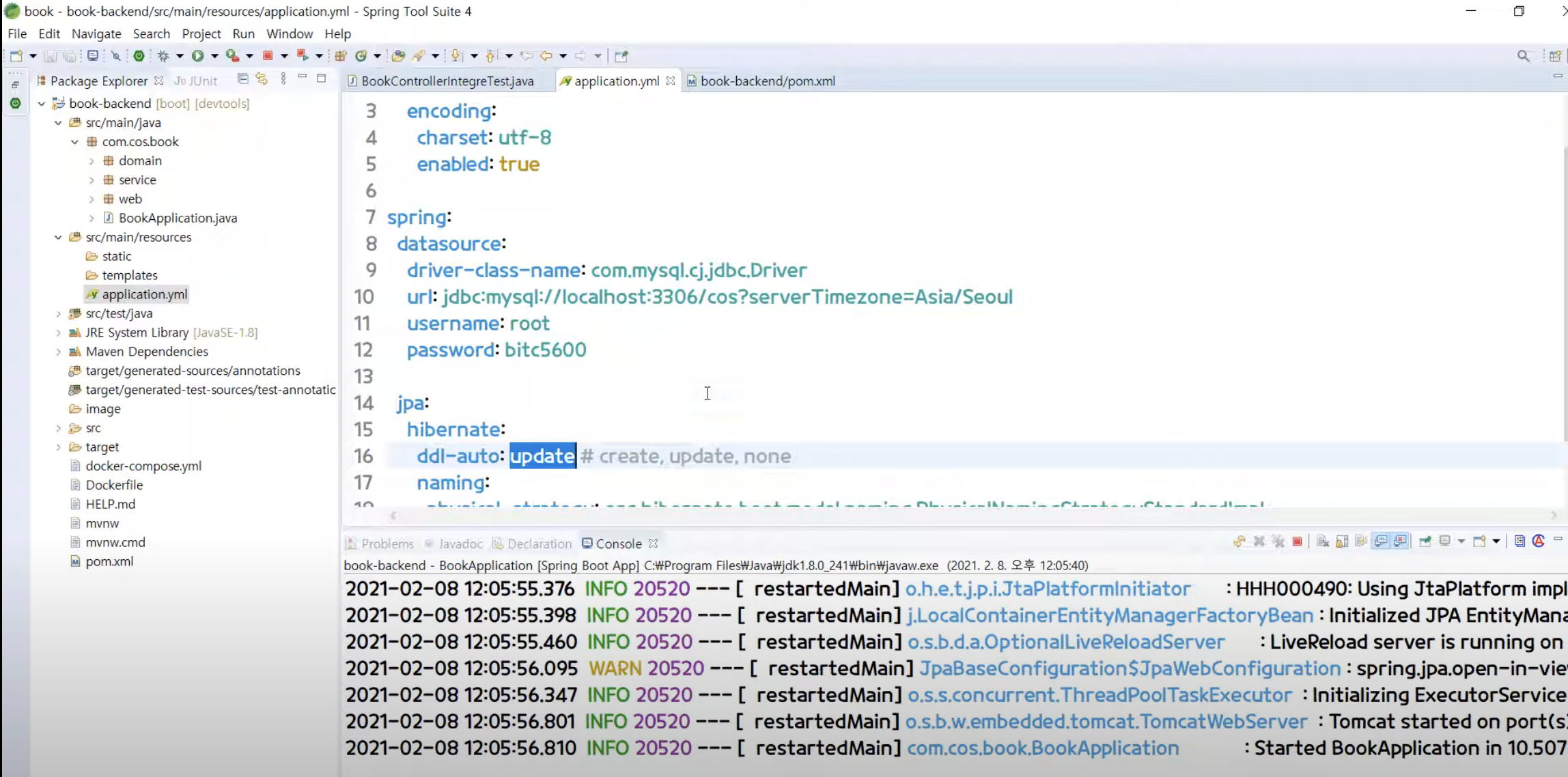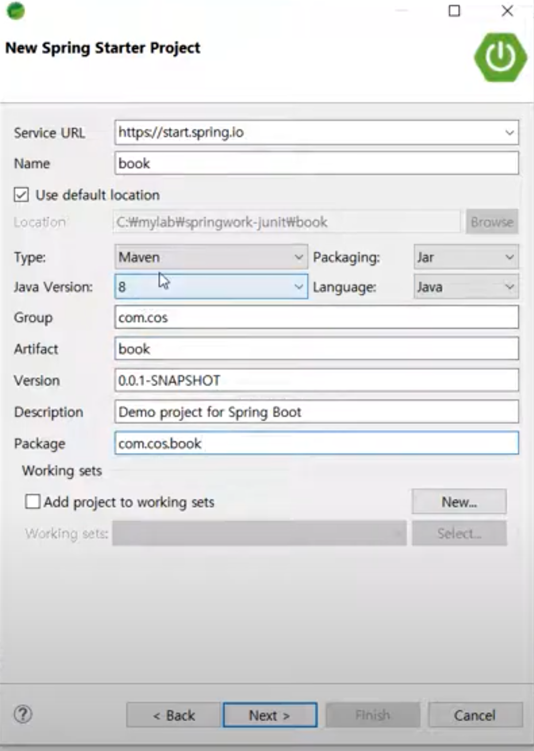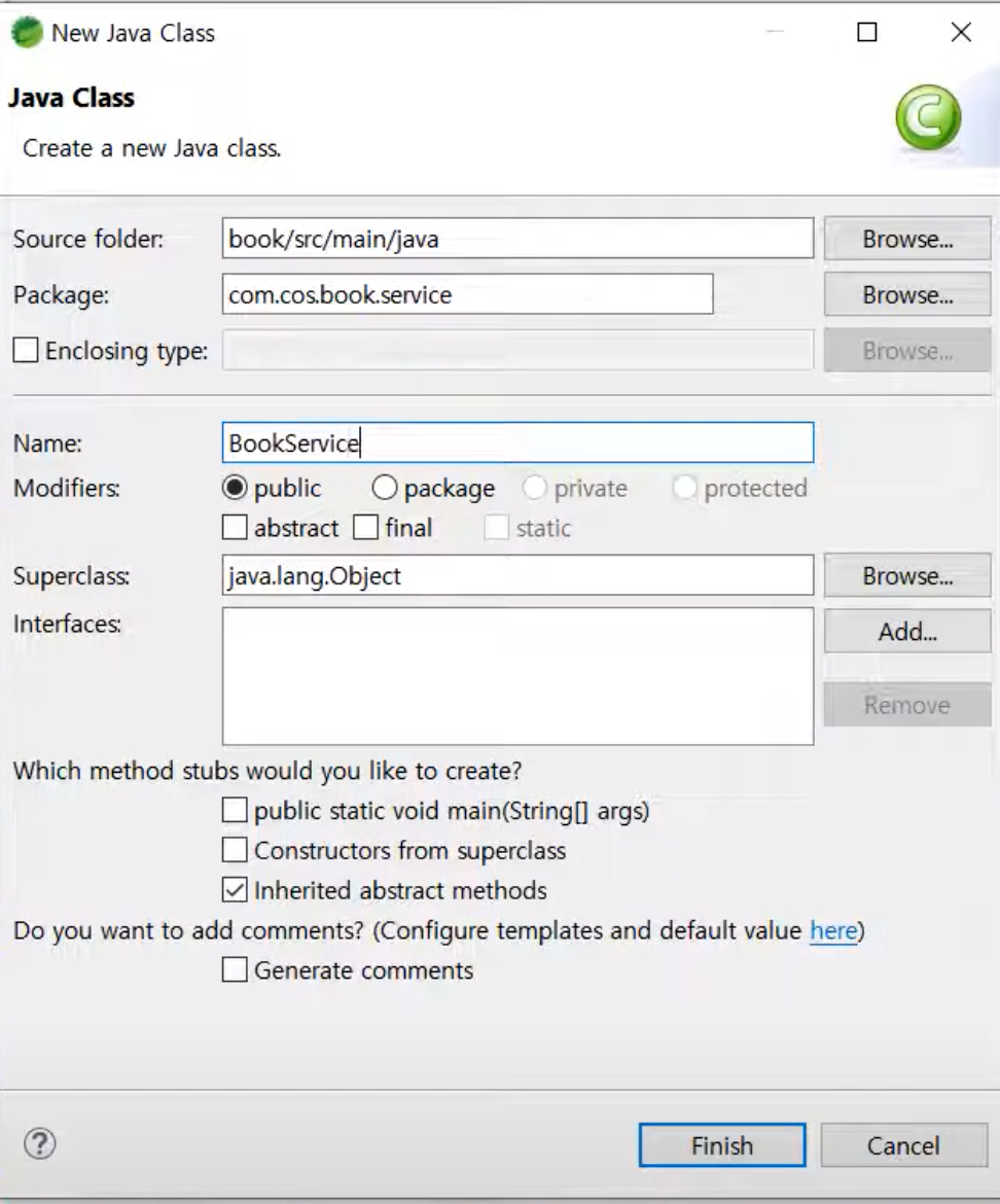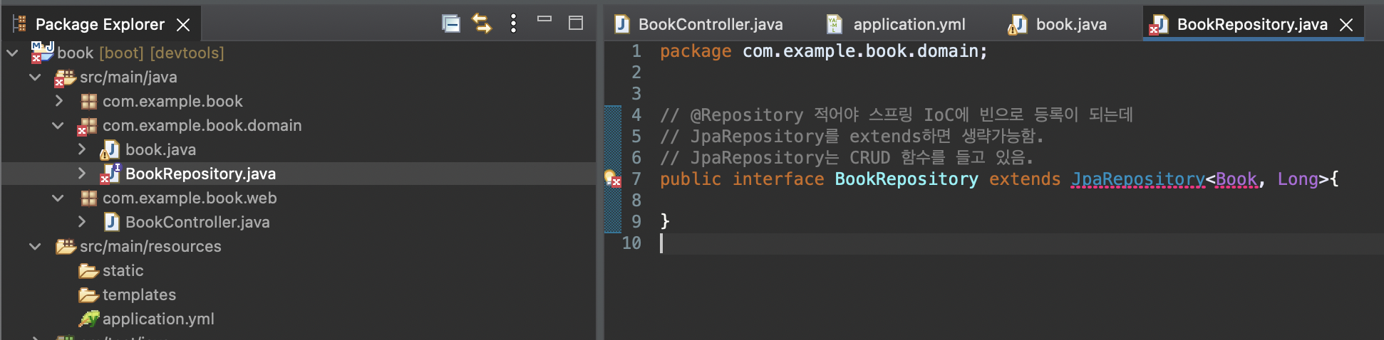 [ 패키지 우클릭] - [ name : com.cos.book.domain ] - [ finish ]