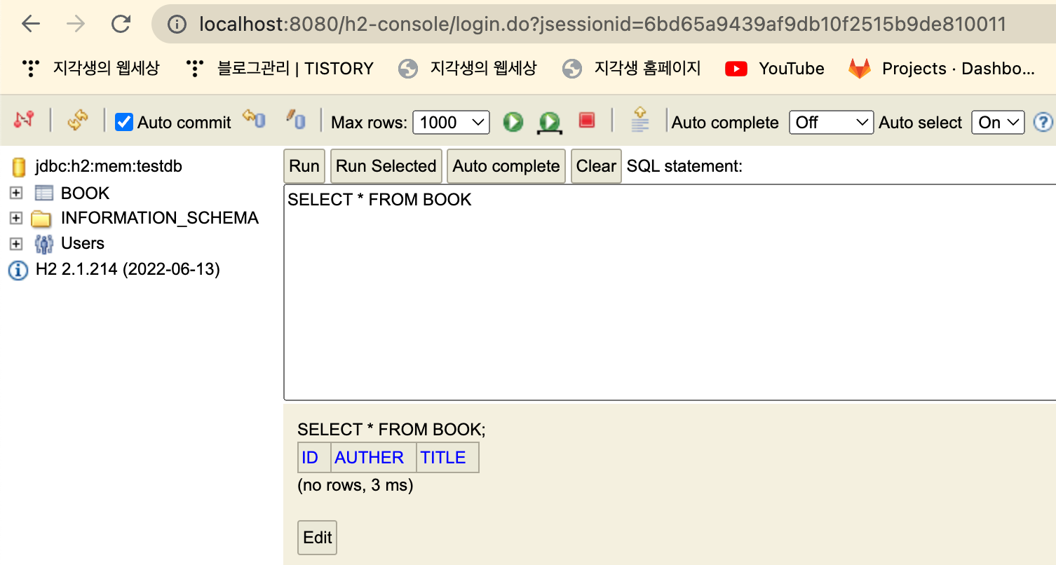 서버 실행해보면 콘솔에 h2 URL정보가 있다.