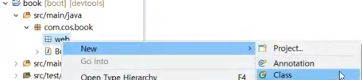 - [ web 패키지 우클릭 ] - [ new ] - [Class ]
